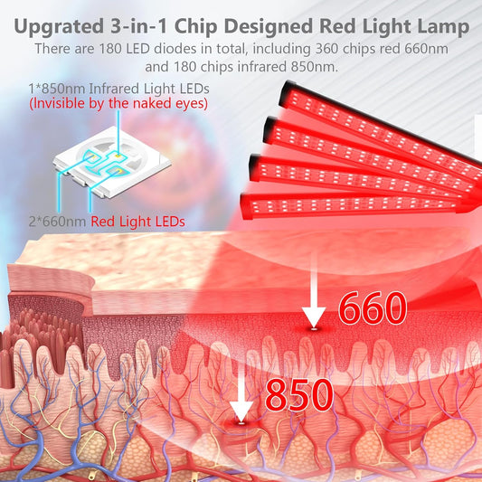 Red Light Therapy for Body, 180Leds Infrared Light Therapy Device with Stand(15"-60"), 660Nm &850Nm Deep Red Light Therapy for Face, Neck, Back